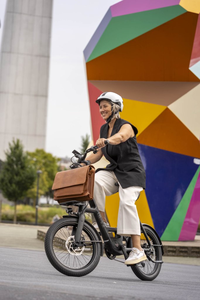 Im Stadtverkehr punkten die Räder durch ihre Wendigkeit und gute Beschleunigung. Außerdem sind das Auf- und Absteigen sowie das Anfahren einfacher, weil der Schwerpunkt tiefer liegt und man nicht so sehr die Bewegungen des Rades ausbalancieren muss. Aber: Bei schlechten Straßen, z. B. Kopfsteinpflaster, haben größere Reifen ein komfortableres Überrollverhalten. „Wir kompensieren das, indem wir möglichst breite Reifen verbauen, die mit weniger Luftdruck gefahren werden. So werden Stöße besser absorbiert und der Fahrkomfort sichergestellt“, sagt Kaletsch. Zudem stellt er fest, dass die Kompaktbikes in den meisten Fällen mit einem Riemenantrieb ausgestattet sind. „Der Riemenantrieb ist wartungsarm und sauber. Wenn man das Bike über ein paar Stufen tragen muss, ist man im Anschluss nicht dreckverschmiert. Das unterstreicht die Alltagstauglichkeit der Räder“, weiß Kaletsch.