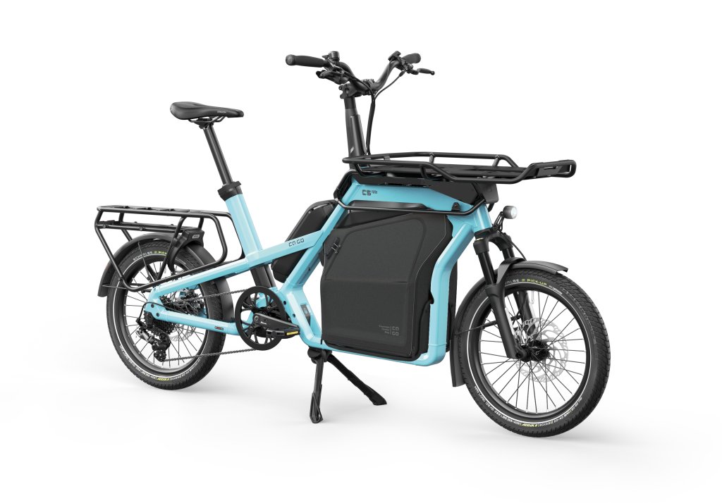 Mit der neuen „Expandable Center Bag“ will der Koblenzer Lastenradhersteller Ca Go die Brücke zwischen großen und kompakten Cargobikes schließen. Bei dem Produkt handelt es sich aber mitnichten um ein Fahrzeug, sondern um eine maßgeschneiderte Tasche für alle Modelle der hauseigenen Kompakt-Cargobike-Serie „CS“. Genauer: für deren vorderes Rahmeneindreck, das Center Rack. Die wasserabweisende Tasche mit stabilem Aluminiumboden lässt sich bei Bedarf von 25 auf 50 Liter Volumen erweitern und verspricht damit entweder eine schlanke Silhouette oder viel Stauraum – ganz nach Bedarf. Die Expandable Center Bag ist kompatibel mit der kleineren „Utility Bag“ desselben Herstellers, mit der es zugunsten eines stimmigen Looks auch das Material teilt. Die Tasche schließt das vordere Rahmendreieck. Dadurch wirken Rad und Tasche sehr integriert.