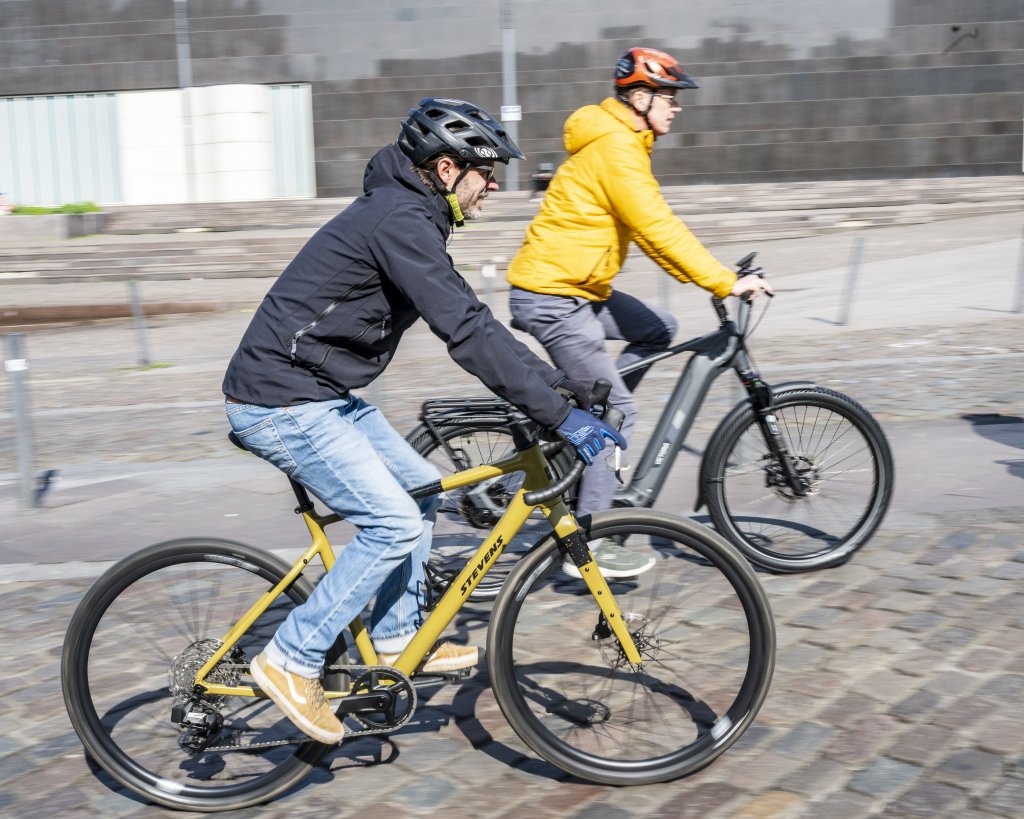 „Bis jetzt können wir sagen, dass die Cyclingworld 2026 sehr, sehr positiv für uns verläuft“, berichtet Sören Borcherding, der beim Hamburg Fahrradhersteller Stevens im Produktmanagement arbeitet. „Unser Fokus liegt auf guten Gesprächen und darauf, Kundinnen und Kunden die Marke, zum Beispiel über Testfahrten, näher zu bringen. Ein großes Thema ist weiterhin der Gravelbereich und unsere Modelle aus diesem Bereich laufen sehr gut. Aber auch leichte Trekkingbikes und unsere Rennräder werden stark nachgefragt.“