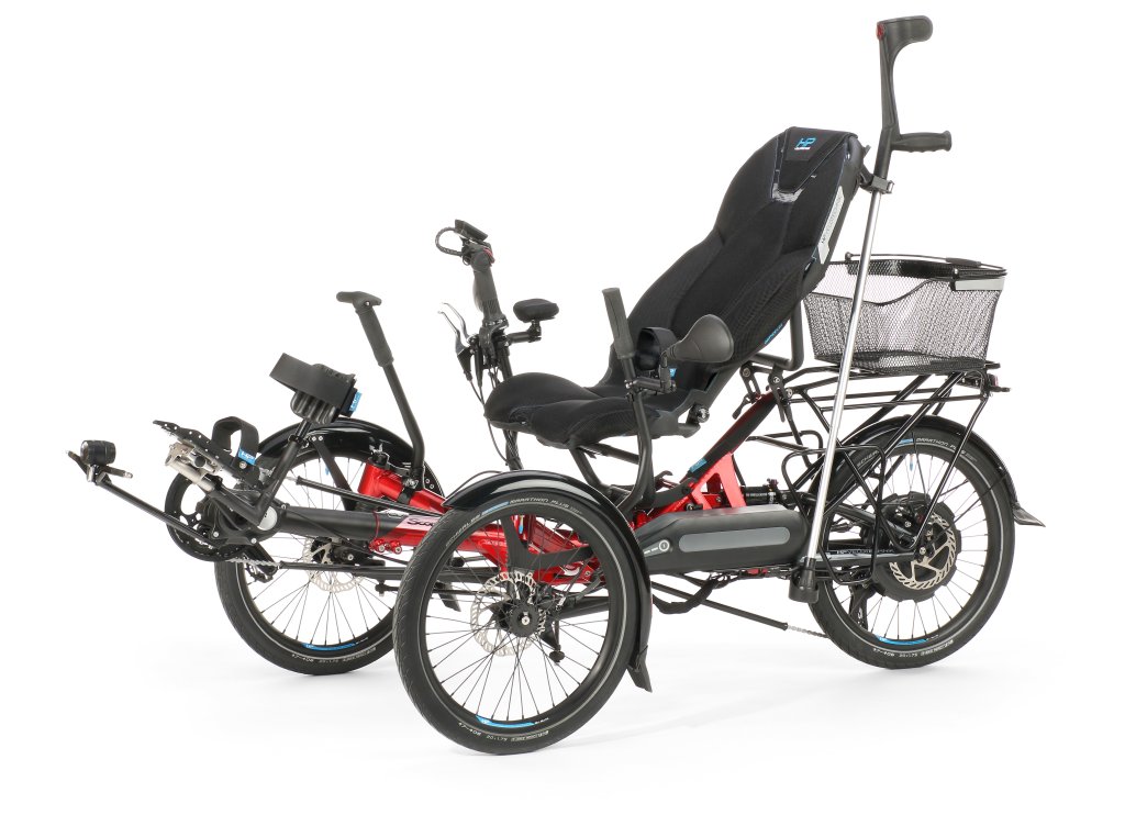 Mit dem Trike „Scorpion plus 20” bietet Spezialradspezialist HP Velotechnik ein kippstabiles, aber sportliches Fahrzeug für Alltagsmobilität und Ausflüge an. Das Ziel bei der Entwicklung lautete „Mobilität für alle”. Der hohe Sitz ermöglicht einen sehr guten Überblick und ein einfaches Ein- und Aussteigen. So können auch Menschen mit Behinderung oder ältere Menschen das Rad nutzen. Mit wenigen Handgriffen lässt sich zusätzliches Reha-Zubehör wie Spezialpedale oder Handauflagen anbringen. Auch eine Halterung für Gehhilfen ist möglich (mehr zu den medizinischen Hilfsmitteln hier). Ein weiterer Vorteil des Rades: Es lässt sich schnell kompakt falten und so platzsparend verstauen, sei es zum Abstellen in der Wohnung oder zum Transport im Auto.