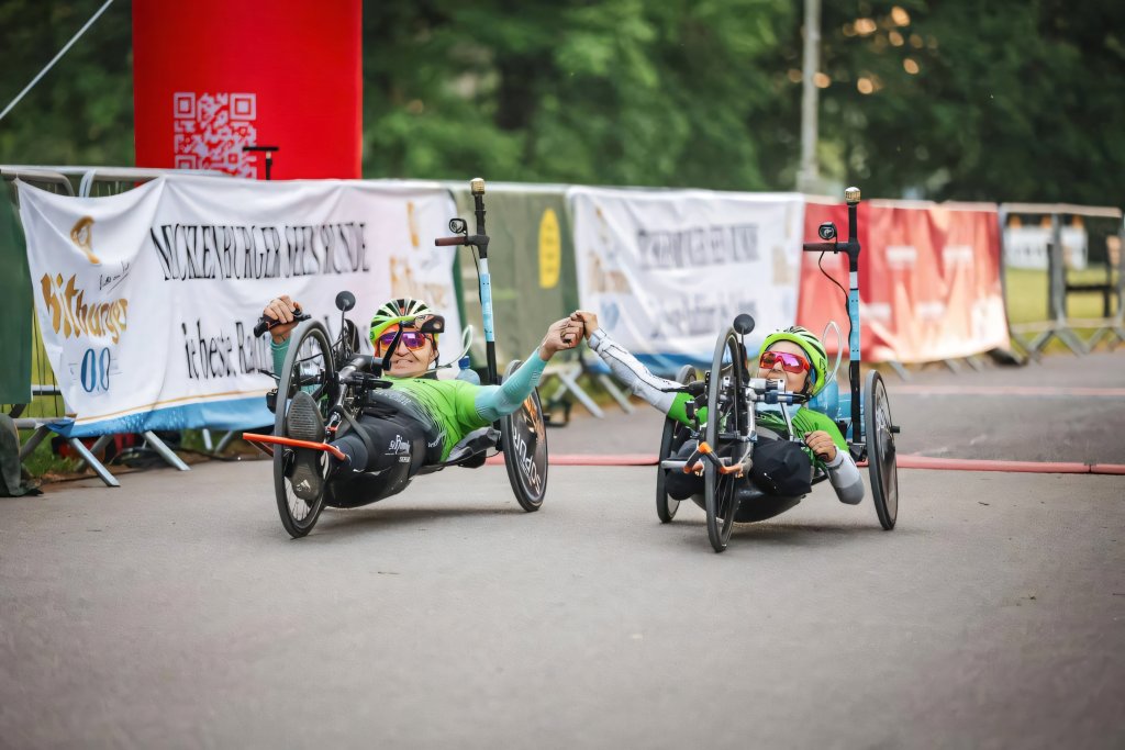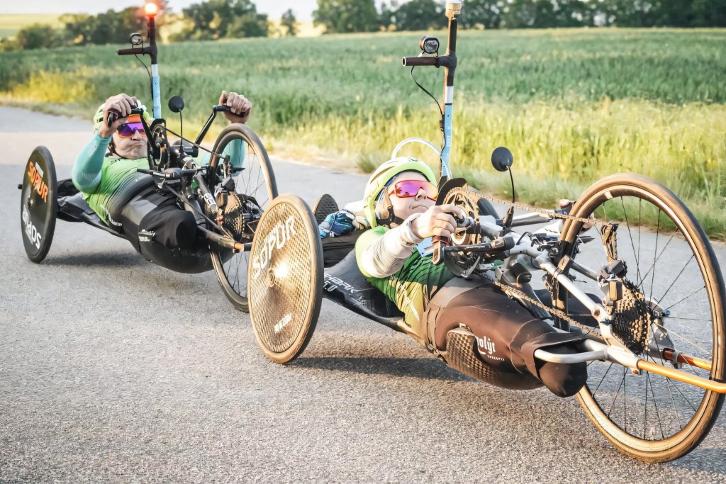 „Das kommt sogar leider relativ oft vor. Ich würde beispielsweise gerne einmal an einem 24-h-Rennen teilnehmen, aber das ist in Deutschland meist ausgeschlossen. Als Grund wird genannt, dass ich ein Sicherheitsrisiko wäre, weil man mich zu leicht übersehen könnte. Das ist schon schade. Es gibt aber ein privat organisiertes, an dem wir teilnehmen dürfen, das habe ich leider noch nicht geschafft. Ich fahre meist bei Jedermann-Rennen und RTFs mit. Gerne fahre ich die Mecklenburger Seen-Runde, eines der wenigen Langstreckenrennen, bei denen Handbikes erlaubt sind. Mittlerweile bin ich schon dreimal mitgefahren. Gerade die Relation zwischen Zeitlimit und Höhenmetern ist hier perfekt. Dazu muss man verstehen: Als Handbiker:in ist man am Berg deutlich langsamer unterwegs. Wenn das Zeitlimit eng getaktet ist, ist es fast unmöglich, bei einer Strecke mit vielen Höhenmetern das Ziel zu erreichen, ohne aus dem Zeitlimit zu fallen. Das wird leider oftmals bei der Streckenplanung vergessen.“