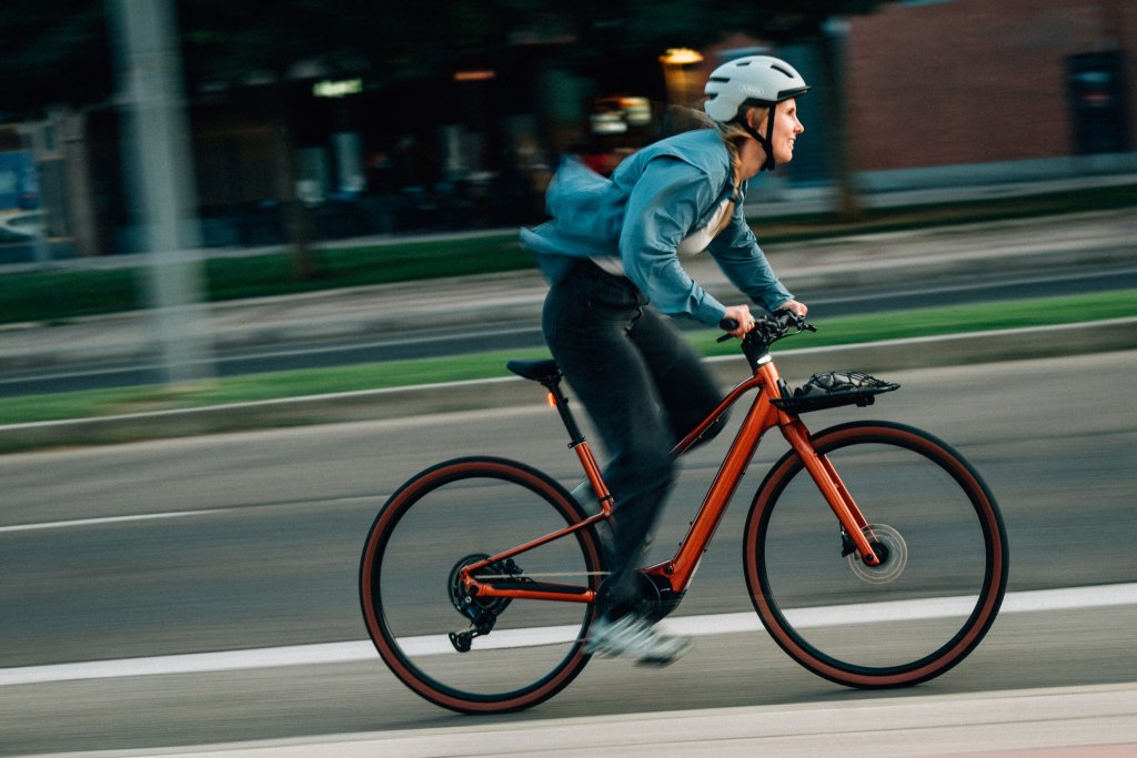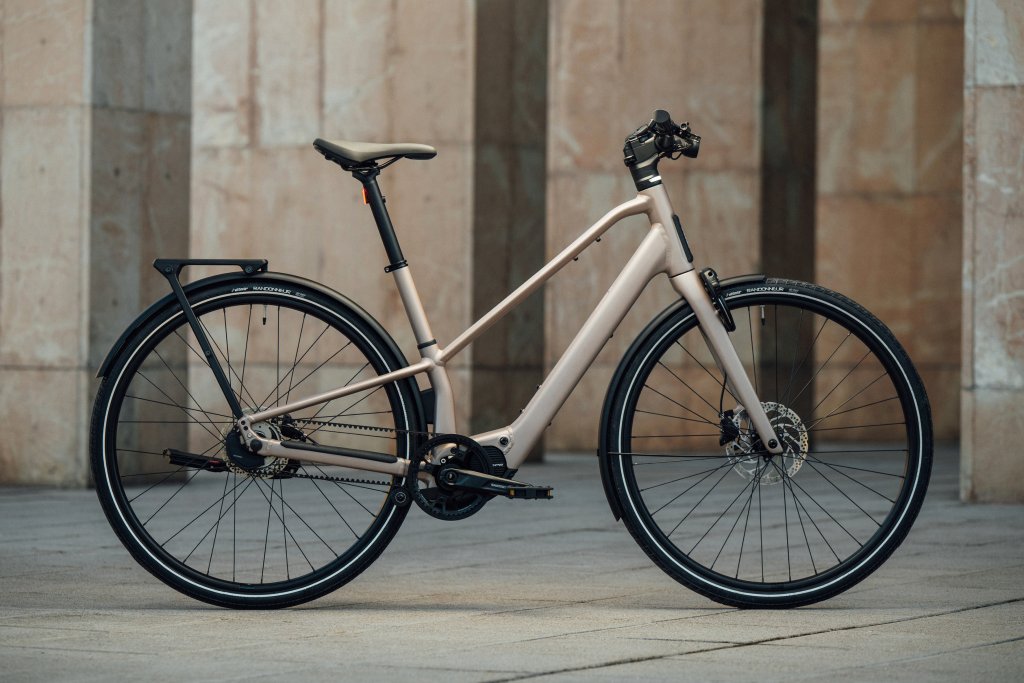 Das E‑Bike „Carpe“ von Orbea ist mit dem Shimano-EP6-Antrieb ausgestattet, der bis zu 85 Nm Drehmoment liefert. Der integrierte 420-Wh-Akku kann bei Bedarf durch einen zusätzlichen 252-Wh-Akku erweitert werden. Der baskische Hersteller hat das Bike an den Alltag in der Stadt ausgerichet. Die Geometrie sorgt für eine komfortable Sitzposition und ein kontrolliertes Fahrverhalten, während der tiefe Einstieg das Auf- und Absteigen erleichtert. Für mehr Fahrkomfort setzt Orbea auf das firmeneigene, sogenannte „Twin-Glide-Flex-System“: Eine spezielle Rahmenkonstruktion soll Vibrationen reduzieren.
