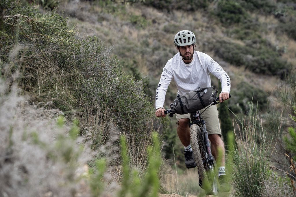 Ortlieb stellt mit dem „Handlebar-Pack Flex“ eine wasserdichte Lenkertasche speziell für Bikepacker:innen vor. Die Tasche fasst 15 Liter und lässt sich mittels einer Adapterplatte schnell und sicher am Lenker befestigen. Dazu wird das separat erhältliche „Bar-Lock Mounting-Set“ von Ortlieb benötigt. Der Zugriff erfolgt über Wickelverschlüsse auf beiden Seiten. Ein Ventil und umlaufende Kompressionsriemen sorgen für komprimiertes Packmaß. Die Tasche ist von innen versteift und soll damit einen stabilen Sitz ermöglichen. Die elastischen Kordelzüge und Haken an der Außenseite bieten weitere Staumöglichkeiten. Dank der vier Haken an der Vorderseite kann das zusätzlich erhältliche „Accessory Pack“ an die Lenkerrolle geschnallt werden. Das Handlebar-Pack Flex kostet 125 Euro.